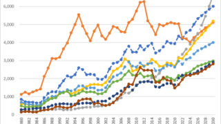 Changes of GDP GDP (1980-2030, USD): G7 countries & China, Russia, India, Brazil, etc.