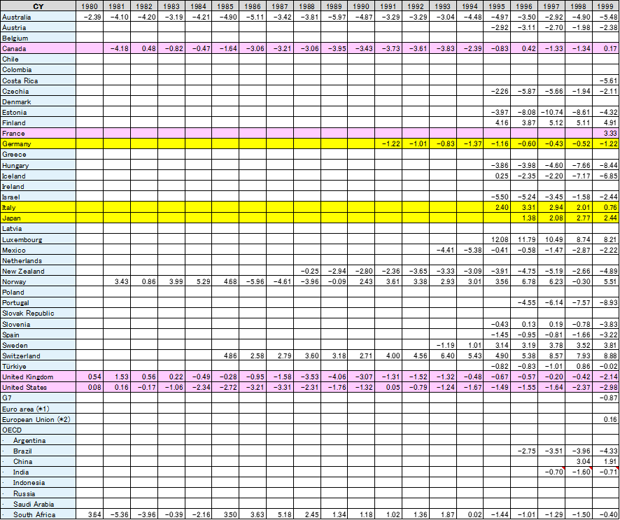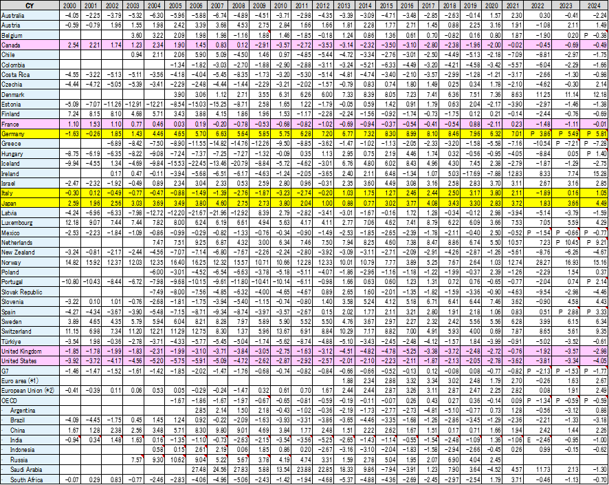 Table 1 OECD加盟国およびその他の国の経常収支の推移